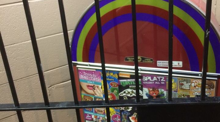 Located down a flight of stairs and past a few oddly placed coin-operated candy machines, the restroom hides in the basement of the building, sharing the floor with a night club.
