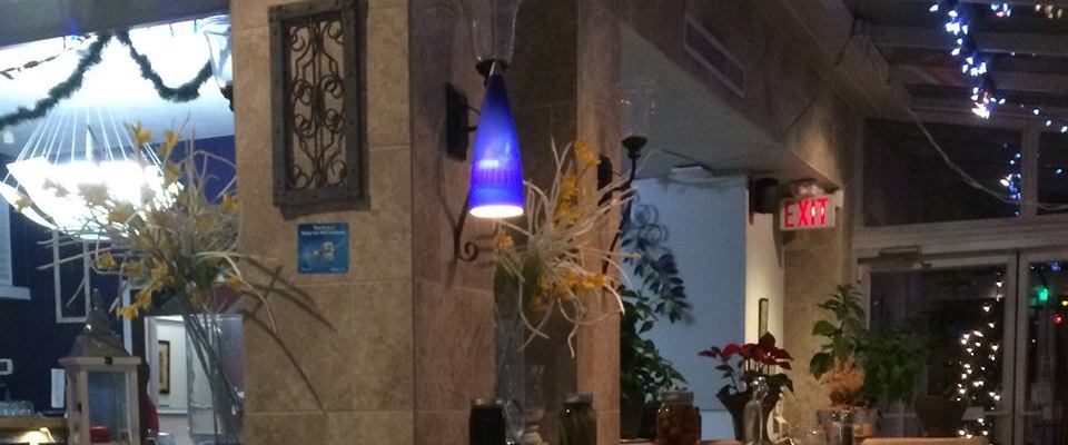 Having never been to Marina’s, I was intrigued to see large throw pillows lining the walls at every table. The blue, white, and grey colour scheme was complemented by marble tiled walls and weird looking plants.