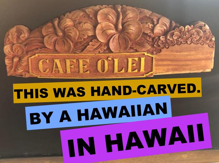 This Café O’Lei place has a lot of stairs. Bold move. I guess they want me to work up an appetite and some sweat. That’s fine by me. I walked here, so I’m already hot, hungry, and grumpier than usual for anyone visiting Hawaii.